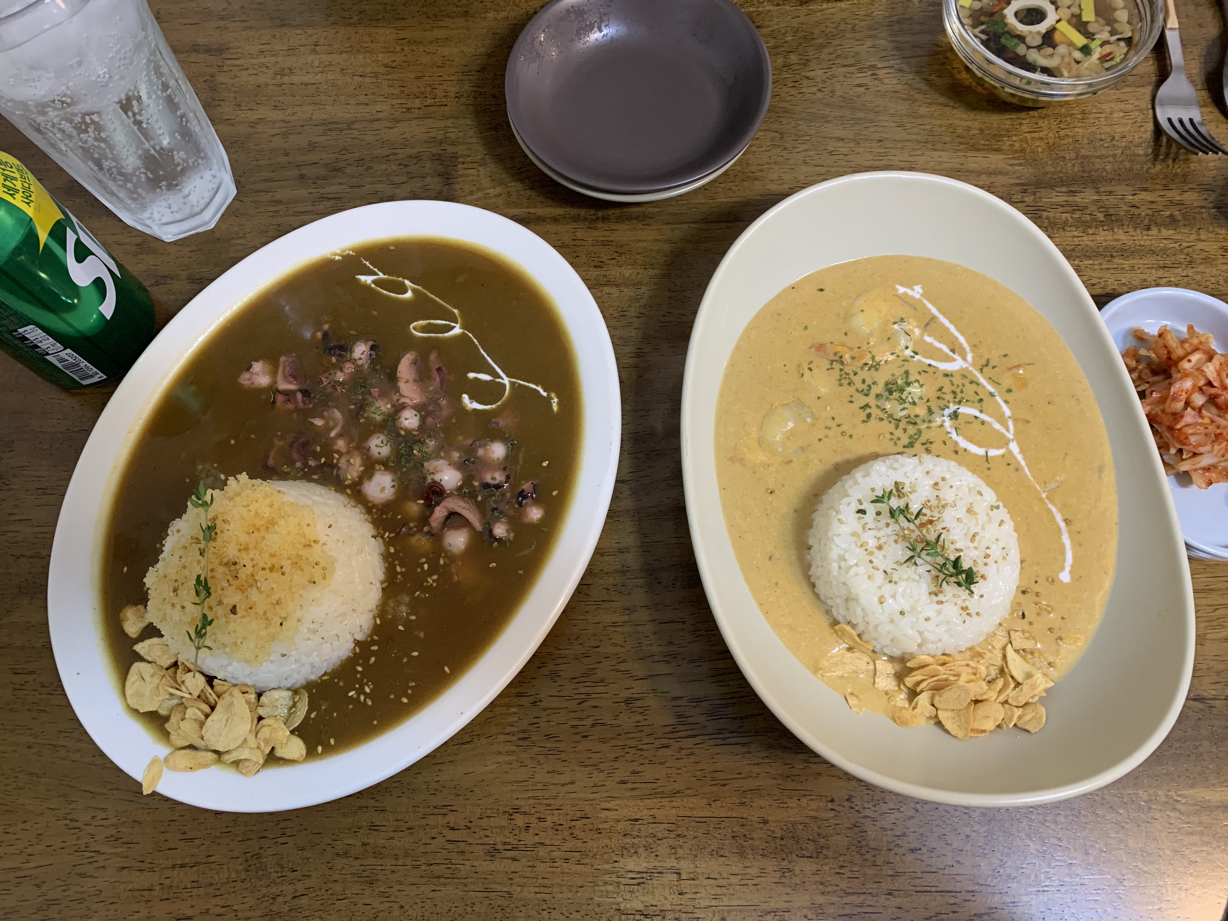 왼쪽은 문어카레 오른쪽은 새우로제카레 입니다.