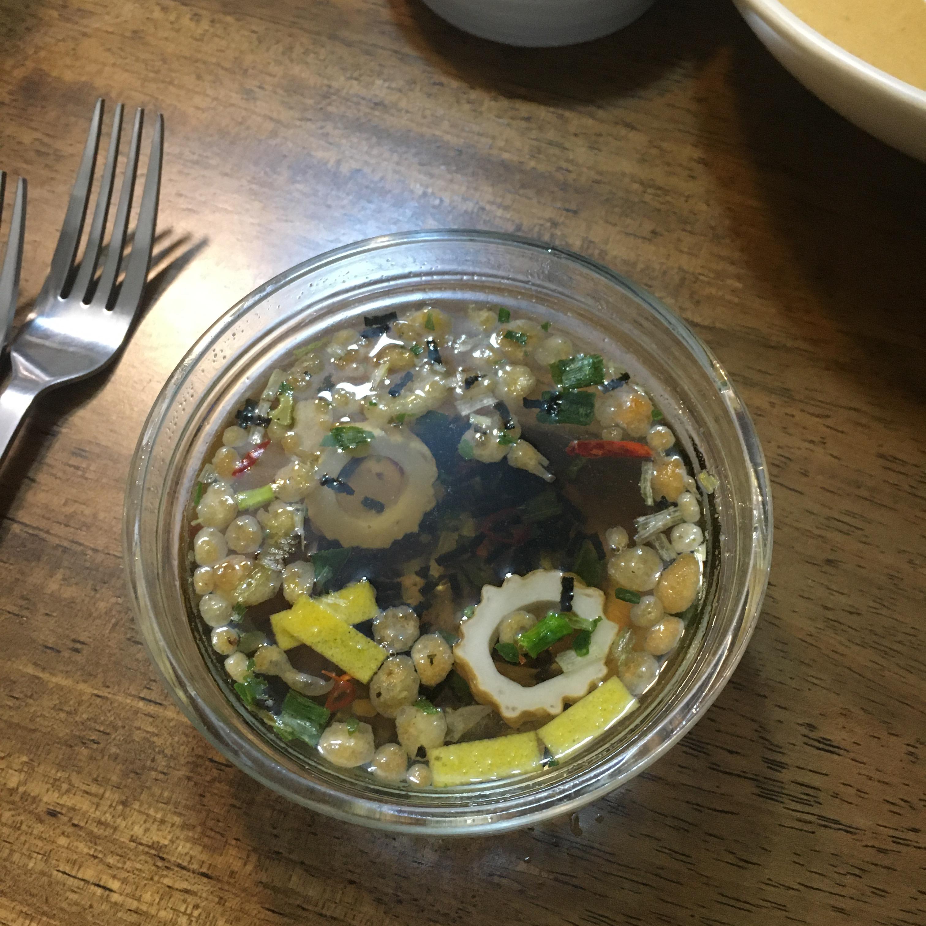음식이 나오기 전에 따뜻한 국 이 나와요